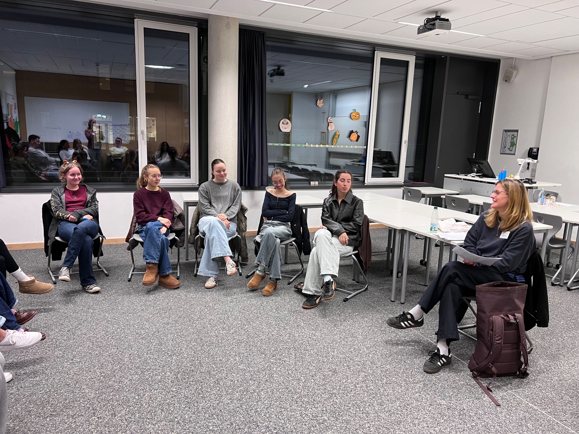 Die Veranstaltung „Begegnung mit Menschen im Beruf“ am 13.11.2025 bot den Schülerinnen und Schülern der Oberstufe auch in diesem Jahr wieder die Möglichkeit, Einblicke in den Alltag verschiedenster Berufsgruppen zu gewinnen und individuelle Werdegänge kennenzulernen. Dabei wurde vielen bewusst, dass der Berufsweg heute oft nicht mehr linear verläuft, sondern viele Kurven, Abzweigungen und Steigungen bereithält. Elf Referentinnen und Referenten aus verschiedensten Berufsfeldern, von Erziehung über Naturwissenschaften, von Medizin bis hin zu Journalismus, besuchten das Gymnasium Mering und stellten in Kleingruppen den Schülerinnen und Schülern sich und ihren Beruf vor. Dabei erfuhren die Zuhörenden nicht nur etwas über die Anforderungen der verschiedenen Berufe, sondern auch, welche Eigenschaften man mitbringen muss, um in diesen Berufen erfolgreich zu sein. Zudem wurden Fragen der Schülerinnen und Schüler beantwortet. Für den reibungslosen Ablauf der Vorträge sorgten die W-Seminar-Leiterinnen und -Leiter, welche die Gespräche moderierten. Ein herzliches Dankeschön an die Referentinnen und Referenten und auch an die Kolleginnen und Kollegen, die sich für die berufliche Orientierung an unserer Schule engagiert haben!